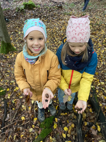 Zum Abschluss durften die Kinder als Eichhörnchen Walnüsse im Wald verstecken. Sie stellten schnell fest, dass es gar nicht so einfach war, die versteckten Nüsse