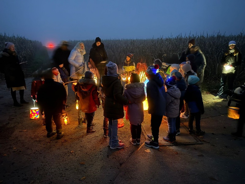 Pünktlich um 17:00 Uhr setzte sich die fröhliche Gruppe in Bewegung. Mit liebevoll gebastelten, bunt leuchtenden Laternen zogen die Kinder über Straßen und Feldwege und verwandelten die Abenddämmerung in ein farbenfrohes Lichtermeer.