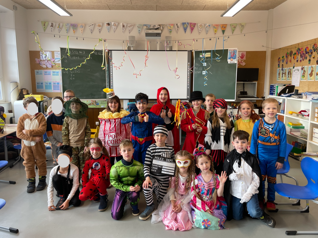 Nach einigen regulären Unterrichtsstunden, in denen die Schüler und Schülerinnen fleißig lernten und arbeiteten, konnte die mit großer Vorfreude erwartete Faschingsfeier beginnen. Zwischen den Spielen wie dem Zeitungstanz, nachts im Museum und der Reise nach Jerusalem stärkten sich alle an einem üppigen Buffet, das eine Vielzahl von Leckereien für die Kinder bereithielt.