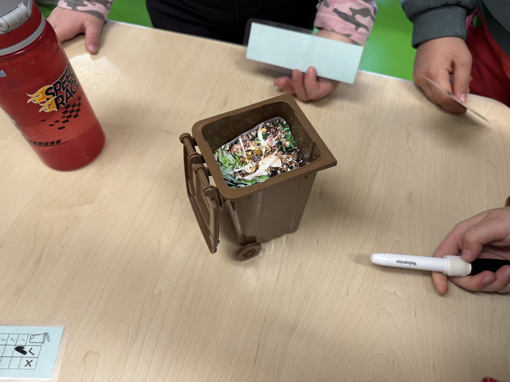 Im Anschluss durchsuchten die Schülerinnen und Schüler gruppenweise verschiedene kleine Biotonnen nach ihrer Verwertbarkeit und sortierten fleißig verschiedene Erdschichten in Boxen nach der Reihenfolge ihrer Verarbeitung.