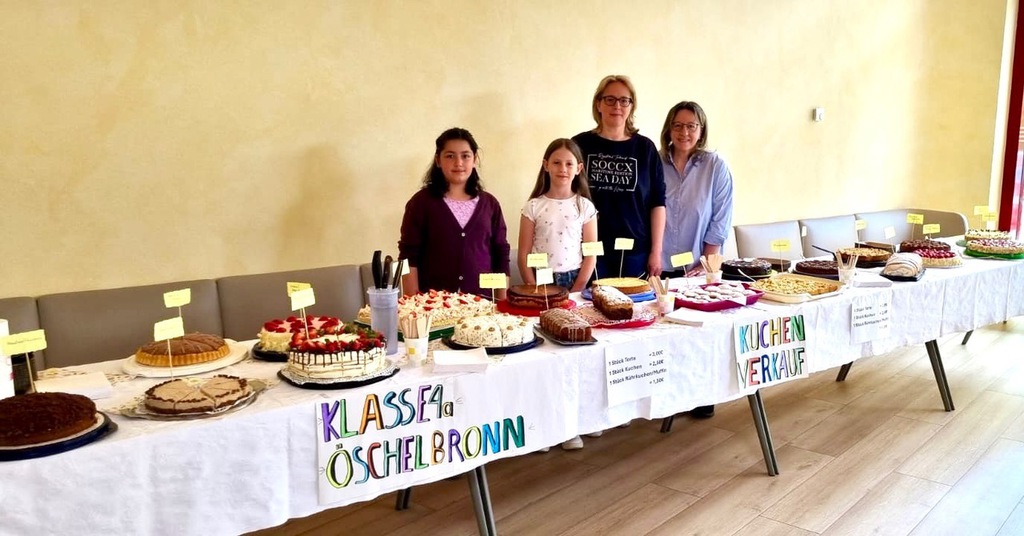 Ein besonderer Dank gilt der Klinik Öschelbronn, die der Klasse 4a nicht nur die Möglichkeit gegeben hat, den Kuchenverkauf durchzuführen, sondern auch tatkräftig mit Materialien unterstützt hat. Ohne diese großzügige Unterstützung wäre die Aktion in diesem Rahmen nicht möglich gewesen. Auch die Schülerinnen und Schüler der Klasse 4a selbst haben aktiv mit angepackt: Mit viel Engagement, Freude und Teamgeist übernahmen sie den Verkauf der Kuchen und sorgten für gute Laune am Stand.