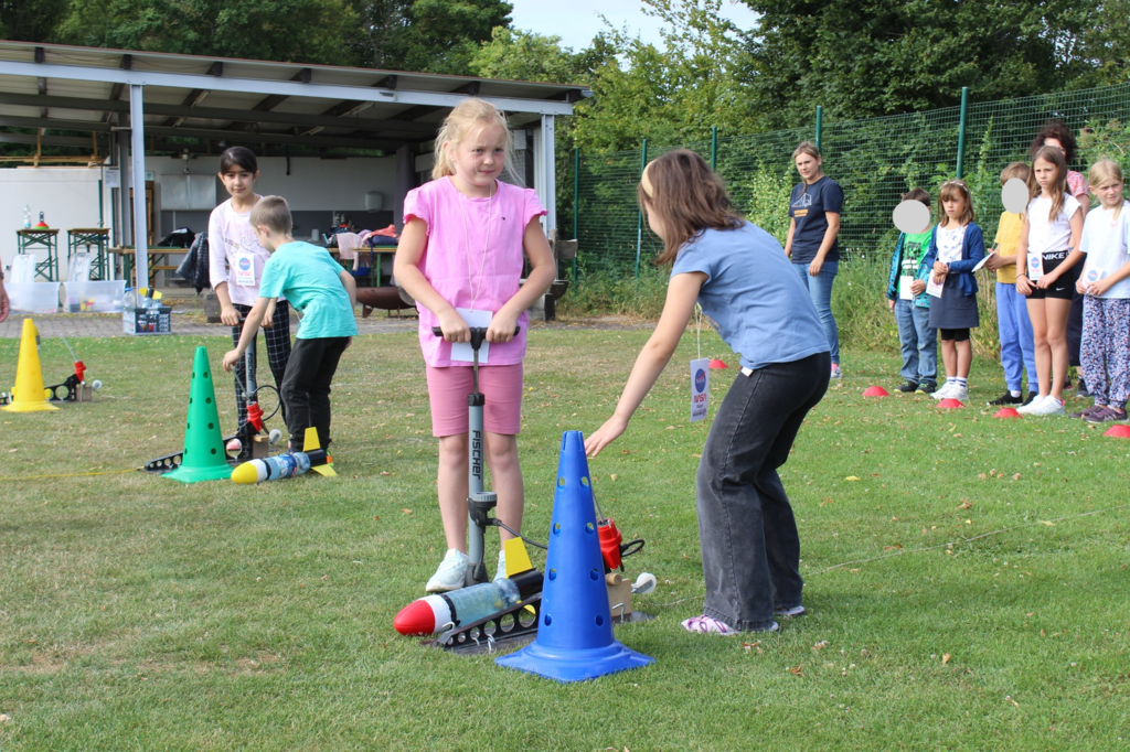 An zwölf verschiedenen Stationen drehte sich die ganze Woche über alles um das Weltall. Die Kinder bauten aus Gips Mondhäuser, konstruierten „Moonwalker“ aus Bausteinen und programmierten kleine Roboter. Echte Teamarbeit musste beim Raketenstart bewiesen werden: Nur gemeinsam schafften es die Kinder, die Wasserraketen bis zu 70 Meter weit fliegen zu lassen. In Anlehnung an die ISS entstand aus Verpackungsmaterial die „Kinder Space Station“ (KSS). Neben einem sportlichen Astronautentraining stand die Herstellung von Energieriegeln und die Konservierung von frischen Früchten auf dem Programm.